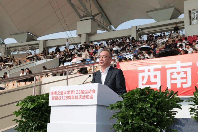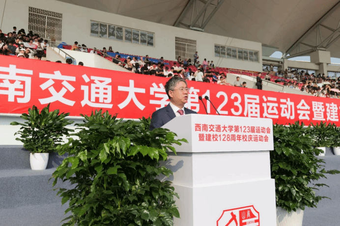 春光作序,万物和鸣,4月12日上午,“西南交通大学第123届暨建校128周年校庆运动会”于犀浦校区北区体育场隆重举行,学校及学院相关领导莅临开幕式现场,为此次赛事助力。本次开幕式由西南交通大学体育学院院长刘江主持。