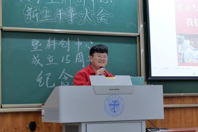 随后,指导老师张津毓回顾了科创中心的发展历程,讲述了他眼中科创中心全体成员们顽强拼搏、砥砺前行的故事。同时,向科创的新成员们发出了诚挚的邀请,鼓励大家在科创的舞台上积极探索、勇于创新,为学院的学科竞赛与创新实践领域贡献自己的力量。