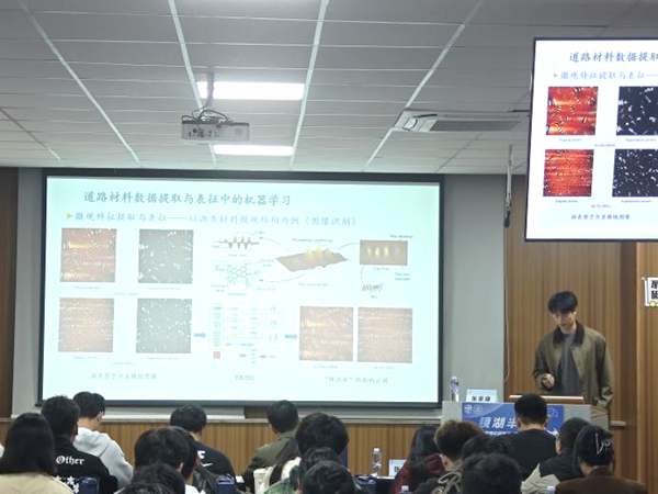 在张教授分享结束后,张博士分享如何将自身课题与机器学习结合。张博士通过分享在材料设计中使用机器学习模型的案例,讨论机器学习在道路材料分析中的应用。同时鼓励同学们多查阅文献,在模型开发中融入专业知识,构建最适合自身课题的模型。