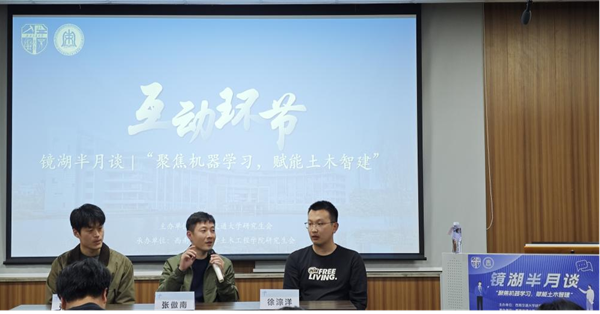 为普及人工智能在土木工程领域的应用方式及广阔前景,激发我校研究生对“人工智能+土木工程”交叉领域的兴趣,由西南交通大学研究生会主办,土木工程学院研究生会承办的西南交通大学镜湖半月谈——“聚焦机器学习,赋能土木智建”讲座于2024年11月7日晚19:00在土木馆J1234教室如期举行。本次讲座特邀土木工程学院张傲南教授、徐淙洋博士和张家康博士为主讲嘉宾,共吸引了线上线下260余名同学的积极参与,现场气氛热烈,反响积极。