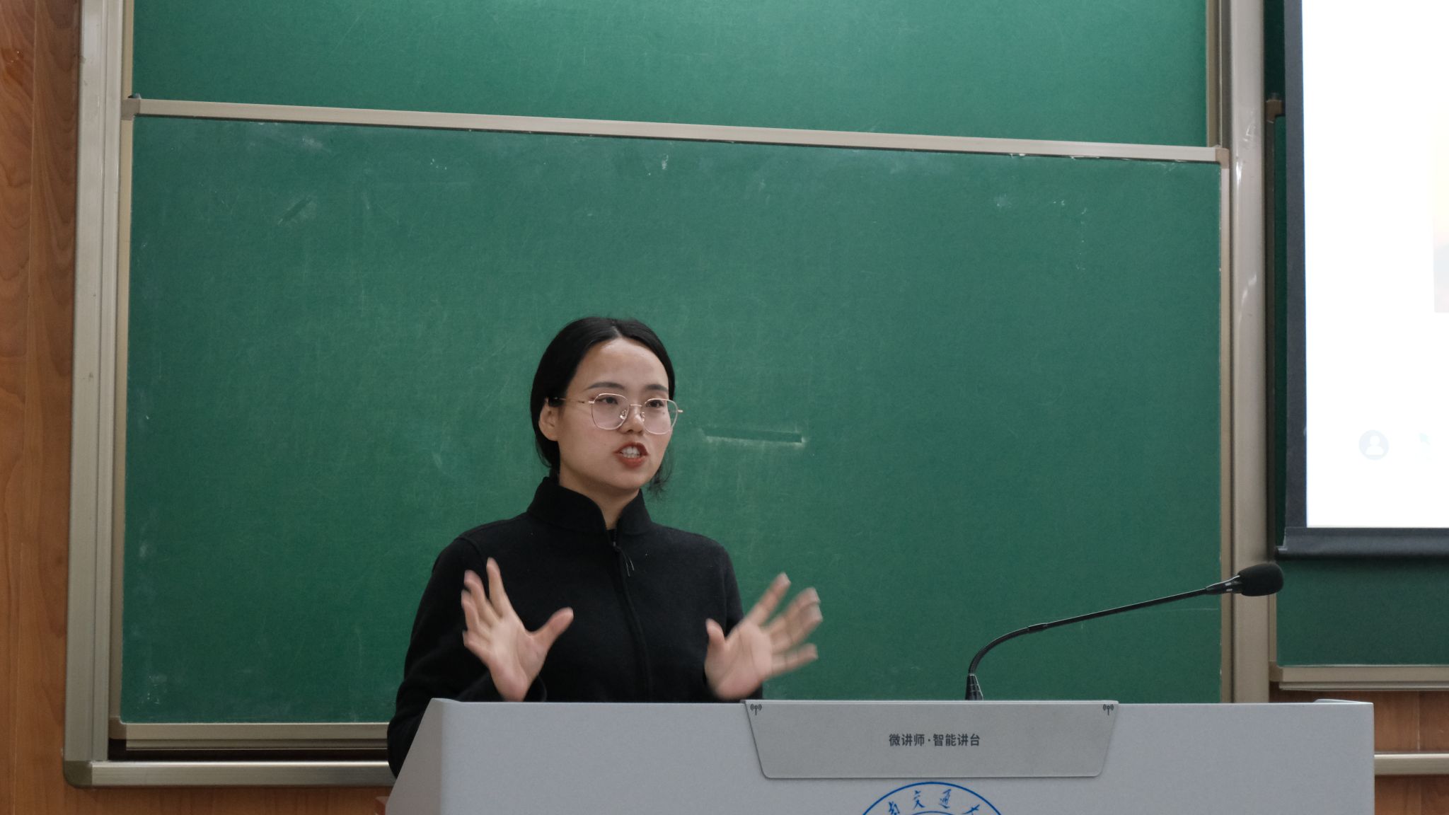 11月12日晚19:30,“新生班团干部理论素养和能力素质提升”专题培训在X2523和X2525教室进行。黄静汶老师从如何做好班级日常管理工作、如何做好班级评优工作,以及如何成为一名好的班团干部来进行分享。黄静汶老师指出,作为一名班团干部,要与辅导员老师保持实时沟通,形成畅通的班级传达与沟通机制,每一位班委都应该具有责任感,为班级和同学做好服务,共同为班级班风和学风建设贡献自己的力量。
