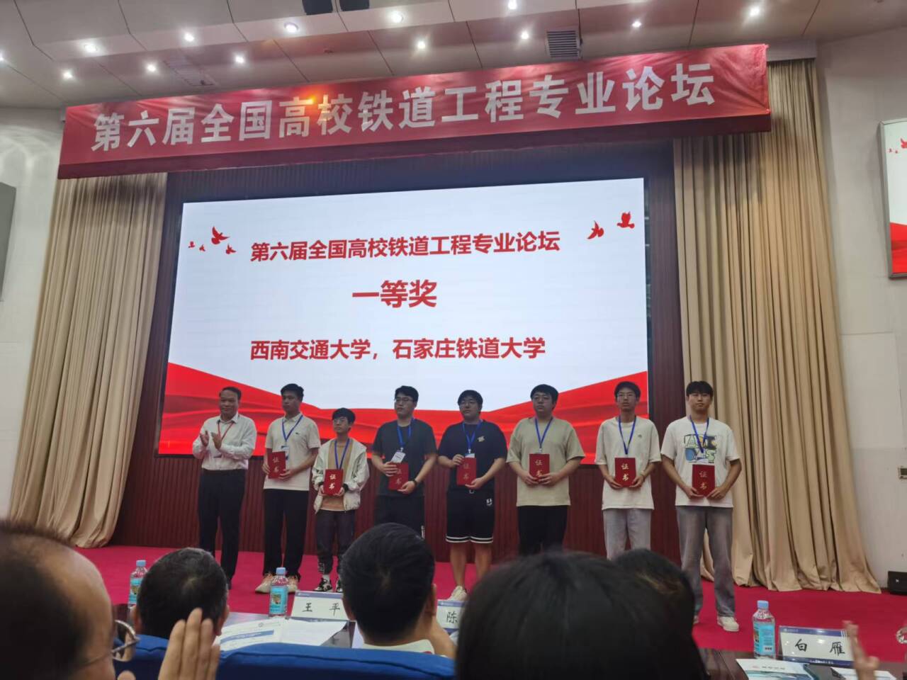 第二届全国大学生铁道工程设计竞赛于2025年7月6日在石家庄铁道大学落下帷幕,bat365中文官方网站学子再次取得优异成绩。在各位指导老师和同学们的共同努力下,参赛队伍克服重重困难,经赛务组复核、评委会评定,决赛奖答辩及加载等多个环节,最终摘得全国一等奖1项的荣誉。在整个备赛期间,参赛队伍备赛时长超200小时,各指导老师平均指导时间突破100小时,为同学们获奖打下了坚实的基础。