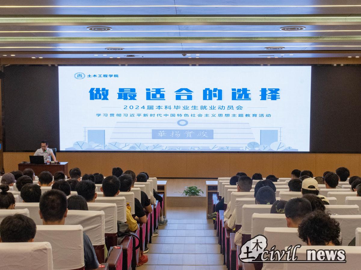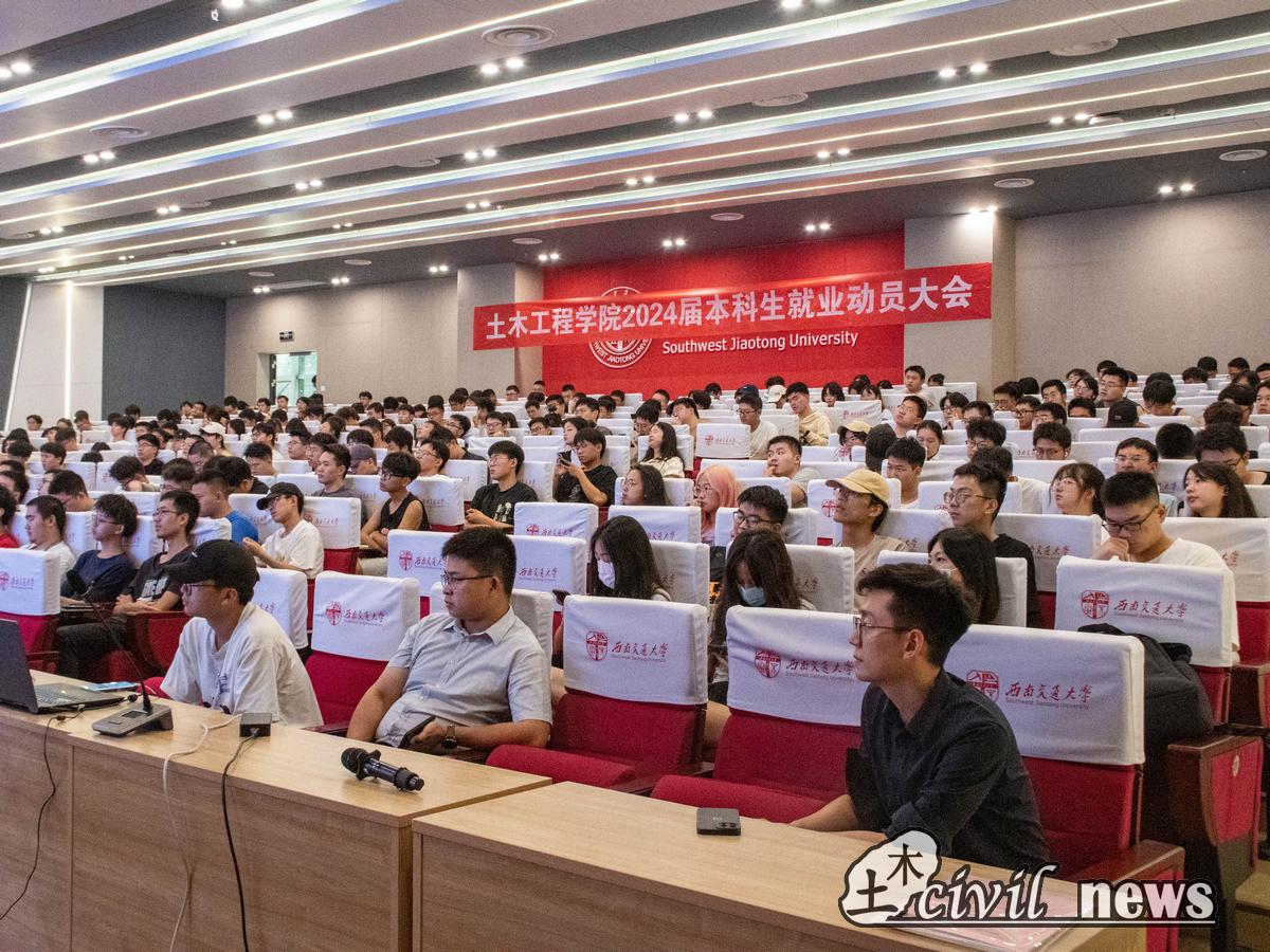为更好落实习近平总书记关于高校毕业生就业创业工作重要指示精神,全国、全省高校毕业生等青年就业创业工作会议精神,进一步帮助学生明晰未来生涯规划,6月30日下午,土木工程学院于学校犀浦校区图书馆一号报告厅召开2024届本科毕业生就业动员会。本次大会由土木工程学院党委副书记周曦主讲。