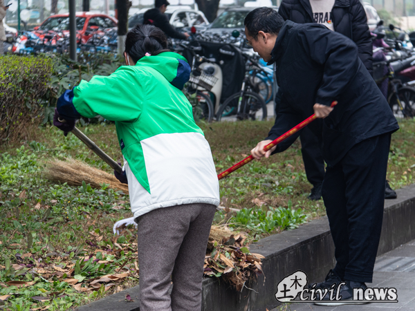 本次党日活动主要包含四号教学楼周边卫生打扫和地下停车场环境清洁工作,旨在为广大师生营造更加整洁舒适的学习工作环境。土木学院党委书记高平平、副书记童万波,地环学院党委书记关秦川、副书记郑波,物业服务中心、维修水电及运输服务中心王友松主任,两中心全体副主任及工作人员来到现场指导工作。土木学院辅导员雷晓鸣老师、孟迪老师和来自土木学院城地、道桥、造价党支部及地环学院党支部的30余名学生党员参与了本次活动。