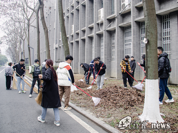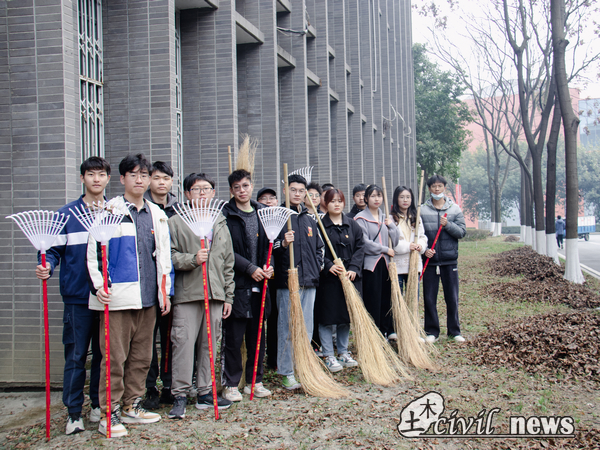 在本次党日活动中,土木工程学院党员志愿者主要负责四号教学楼实验区后侧花坛的卫生工作。在各支部负责人的带领下,他们仔细清理夹杂在花圃和草丛中的垃圾,并将枯叶打扫成堆以便转运。在完成全部清扫工作后,党员志愿者集体合影留念。