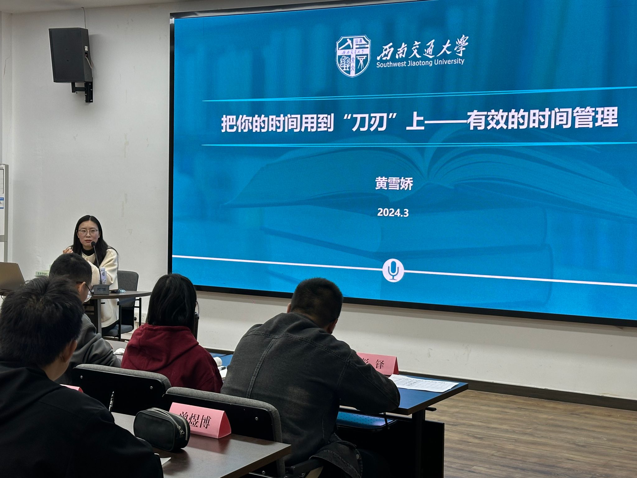 为帮助学生更好地认识到时间管理的重要性,并学会运用有效的方法提高时间利用效率。3月14日晚上19:00,依托西南交通大学“时代新人铸魂工程”大学生日常思想政治教育精品项目,土木工程学院“红志”学生骨干培训班邀请黄雪娇老师,在X4407教室开展“有效的时间管理”专题讲座,旨在引导学生树立正确的时间观念,合理安排学习、工作和生活,促进个人成长与发展。