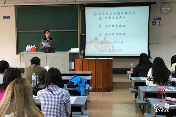 此次班会由陈醉主持。陈醉主要从交通、宿舍、饮食、财产、求职这五个方面详细介绍了存在的安全隐患和如何防范的注意事项。首先,在交通安全上,他简要讲述了校园交通的特点,如时间上相对集中,交通秩序最为复杂;路面窄,转弯磨角多,容易出事。他提醒在场同学一定要提高交通安全意识,遵守交通安全规则,注意自身安全。随后,在宿舍安全问题上,通过例举因乱使用电器而引起火灾的案例,着重强调了在宿舍千万不要使用违章电器,不要随便使用明火,不要乱拉接电线使用,一定要遵守宿舍管理规章制度,宿舍安全问题不容小觑,为创造和谐寝室、安全寝室贡献一份力量。紧接着,在饮食安全上,他谈到要注意食品卫生安全,不要到不正规餐馆就餐,不要因贪小便宜而买垃圾不卫生的食品。然后,在财产安全上,他介绍到财产安全隐患是宿舍中另一主要隐患,主要表现为盗窃和诈骗。平时不论是外出还是呆在宿舍都需要保持一个警惕之心,妥善保管自己的财物,如果发现可疑人员要及时向学校警卫处报告。同时,要注意防范意外伤害诈骗、电话短信诈骗、身边事诈骗、网络诈骗等。最后,在求职安全上,他谈到有同学找兼职时要多留心,注意防骗,一定要通过正规渠道寻找兼职,千万不可求职心切,而被一时的利益蒙蔽双眼。