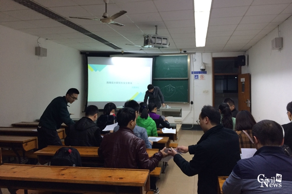接下来全体同学签订了《寝室安全责任告知书》和《西南交通大学研究生在读期间安全责任告知书》。
