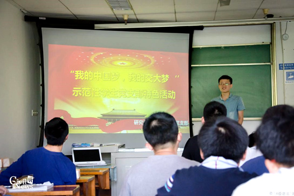 秦晓同还向全体学生党员介绍了此次党支部特色活动的具体流程,并着重强调了此次演讲比赛的重要意义。秦晓同说,希望通过此次活动使全体党支部成员深刻认识“中国梦”的内涵,自觉明确融入“中国梦”和“交大梦”的奋斗方向,传承竢实扬华自强不息的交大精神,立志学好专业知识,发挥党员的先锋模范作用和党支部的战斗堡垒作用,做好“宣传者、践行者、争先者、探索者”。