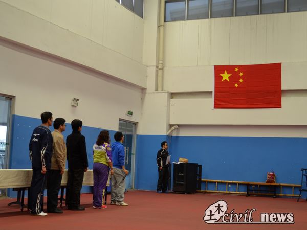 10日下午,阴沉了许久的天气终于迎来了难得的晴朗。17点整,比赛正式开幕。奏唱国歌后,校工会主席罗乾超发表了重要讲话,罗主席的讲话慷慨激昂,之后本校教职工乒乓球协会会长杜力平等人也陆续发表了讲话,当他们的话语还不断地萦绕在人们耳边的时候,比赛正式开始。