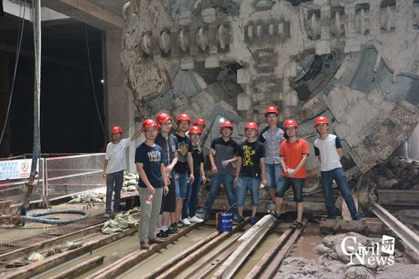 张部长首先介绍了车站的平面图和场地布置情况。他介绍到,地铁车站紧靠二环高架,并且在城市中心地带施工,场地条件受限,在工程施工中必须要做好场地的布置和安排工作。随后带领大家参观了作为车站站厅的负一层与作为车站站台的负二层。在车站负二层,还有一台已经掘通的直径大约6m的盾构机,张部长就盾构机的施工情况进行了介绍。他告诉大家,这台盾构机还将继续向火车北站方向推进。在参观过程中,同学们提出了许多问题,张部长和严主任详细地解答了各学生党员的疑问。