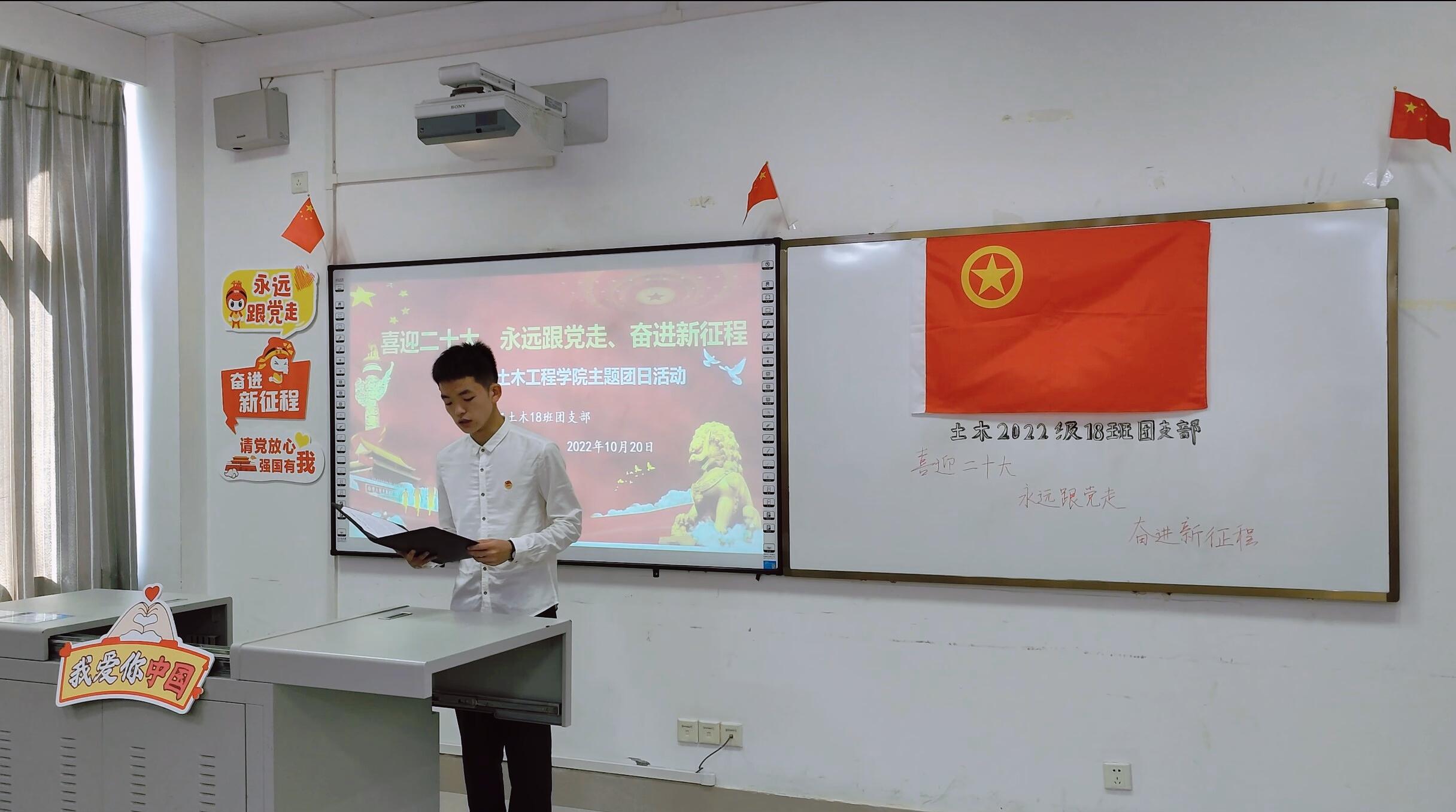 土木工程学院2022级18班团支部全体成员于10月20日在X4134教室开展了“喜迎二十大 永远跟党走 奋进新征程”主题团日活动。团支部全体成员共24人积极参与活动,开展时长90分钟。