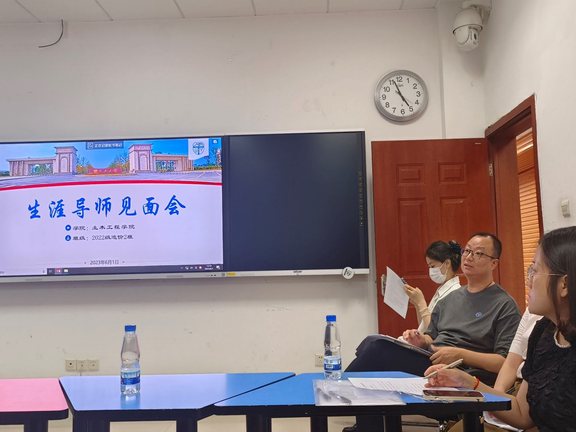 为了帮助同学们了解造价专业的前沿动态和就业前景,明确自己的学习目标和职业规划,土木工程学院22级造价2班于2023年6月1日下午15:30在4号教学楼4133会议室举行企业生涯导师见面班会。这次班会邀请了来自中交四航局四公司的三位企业生涯导师,与同学们进行了面对面的交流和指导。