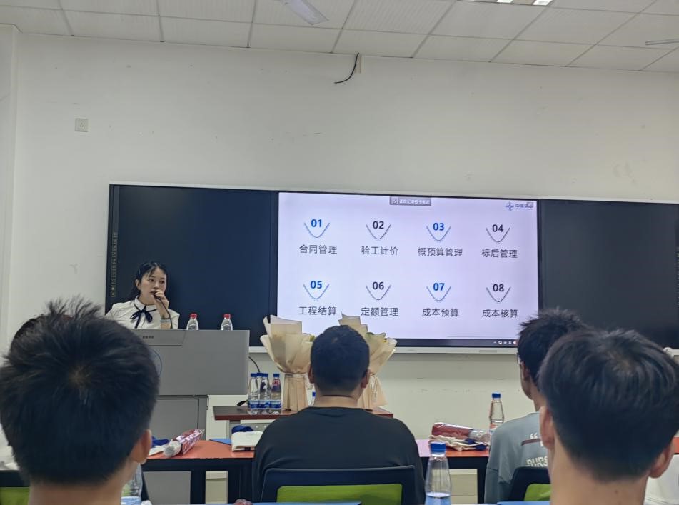 首先,王淑栏老师向同学们播放了北大招生的宣传片,激发了同学们追求卓越的梦想。接着,王老师向同学们介绍了三位企业生涯导师的基本情况,分别是蔡静茹、邹小宁和王淑栏。现在在中交四航局四公司从事造价相关的工作,有着丰富的实践经验和专业知识。