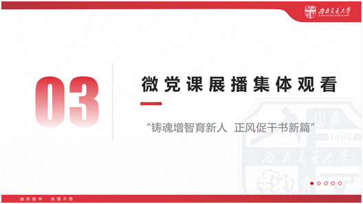 为全面展现教育系统主题教育突出成果,展现高校师生在新时代新征程中良好精神风貌,充分发挥高校先进基层党组织和先锋模范人物的示范带动作用,教育引导研究生党员自觉用党的创新理论成果武装头脑、指导实践、推动工作,2023年 7月7日,2022级硕士道铁1班党支部集中组织全体党员、入党积极分子集中观看了“铸魂增智育新人 正风促干书新篇”高校党组织示范微党课展播活动。