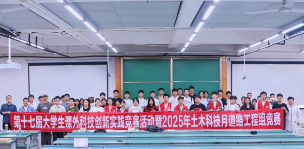 2025年5月5日中午12:00,第十七届大学生课外创新实验竞赛活动暨土木科技月道路工程组竞赛于我校犀浦校区X4359举行。本次竞赛由土木工程学院科创中心承办,并有幸邀请到土木工程学院的杜树碧、黄静汶、候益平、谭力豪、郭哲维、谢宇清、张津毓、贾璇琦、李策、孟迪、王森、梁涛十二位老师担任初赛评委,由土木工程学院的丁海波、颜川奇两位老师担任决赛评委。