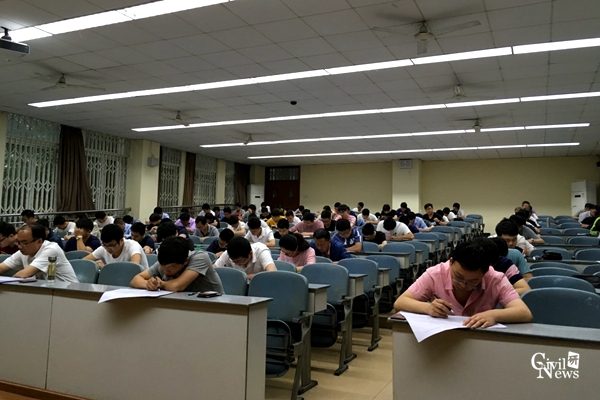 本次结业考试由土木工程学院继续教育中心的老师监考,考试时间为上午8点30分到11点30分。在江富长老师宣读完考试注意事项之后,考试准时开始。考试过程中监考老师认真负责,考场纪律井然有序,经过3小时的认真作答,考生们陆续交卷离开考场,本次考试到此结束。