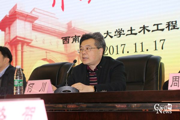 何川教授首先进行致辞,并对各位中国铁建的各位总工程师表示了热烈欢迎。他表示,感谢中国铁建对西南交通大学的信任,学校已有121悠久的办学历史并一直秉承竢实扬华、自强不息的精神,学校多年来一直为中国铁路基建事业的发展贡献着巨大力量。何川教授说,中国铁建是世界上最大的交通基建行业公司,取得了许多举世瞩目的成就:青藏铁路、京沪高铁等工程,也将继续在“一带一路”建设中发挥举足轻重的作用。他表示,针对本次培训,学校将派出最优秀的老师同各位优秀的总工们学习交流,希望各位总工学有所成,度过一段难忘的学习时光。