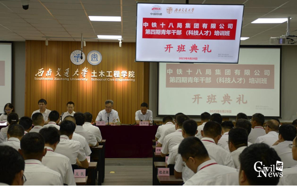 2023828号上午八点,中铁十八局集团有限公司第四期青年干部(科技人才)培训班开班典礼在九里校区土木馆1234教室顺利举行。
