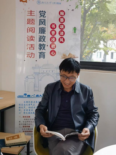 2023年11月02日,岩土工程系教工党支部在土木工程学院阅览室组织开展“翰墨颂清风,书香浸初心”党风廉政教育主题阅读活动,本次活动的主题是“阅读点亮智慧,书香润泽心灵,通过阅读加强教师党员的党性修养、坚定理想信念、净化精神境界、时刻保持初心,进一步树牢纪律意识和廉洁意识。”岩土工程系全体教工党员参加,活动围绕党风廉政和师德师风建设相关话题,开展了阅读体会交流,分享了彼此的认识,支部书记张迎宾教授主持本次活动。