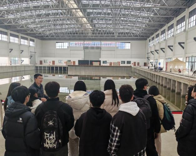 在张老师的带领下,支部成员们参观了实验室内的各个研究区域,了解了先进的科研设备和正在进行的实验项目。张老师带领大家对实验室的六大区域进行了参观,并为大家逐一讲解了每个区域的工作和意义。其中,多功能桥梁波流实验池的讲解尤为详尽——该实验池可精准模拟深水、强流、海啸、风暴潮等复杂工况,为深水大跨桥梁基础冲刷防护、结构抗浪动力响应等关键技术研究提供了核心支撑,其专用性与功能集成度均达到国际领先水平。亲眼目睹先进设备运转场景、聆听科研团队攻坚故事,成员们对土木工程“科技赋能、绿色发展”的认知愈发深刻,对行业未来发展前景满怀憧憬。