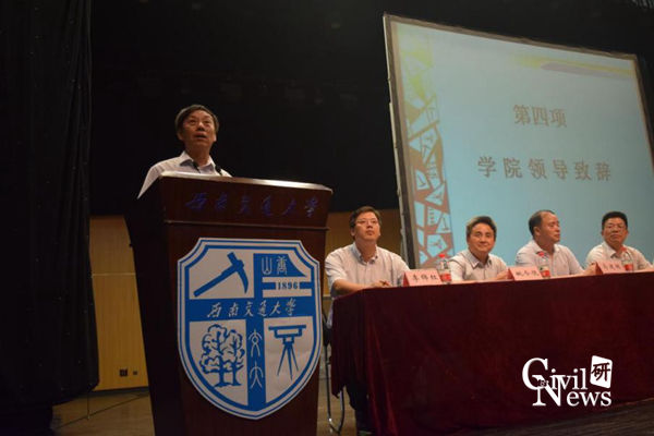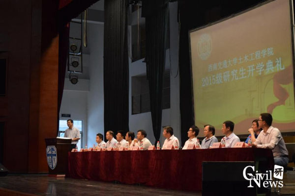 2015年8月28日下午2点,土木工程学院2015级研究生开学典礼在九里校区隆重举行,出席本次典礼的领导有土木工程学院党委书记钱永久、院长高波、副院长廖海黎、党委副书记李锦红、党委副书记李彤梅以及各系负责人,会议由李锦红副书记主持。