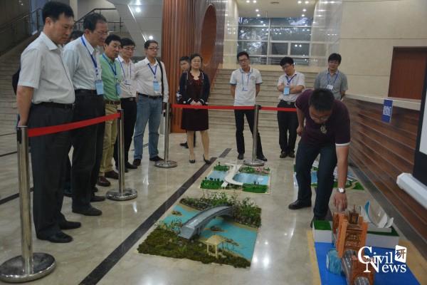 随后,桥梁系王琦老师向评估组专家介绍了参赛组制作的模型,专家组对一个个制作精细,造型美观的桥梁模型展现出浓厚的兴趣,在认真听取王老师讲解的同时,结合比赛规则,模型的制作流程、时间等与现场的老师和参赛选手展开了热烈的讨论,也对同学们在短时间内能够制作出造型如此美观,手工如此精良,创新意识如此强烈的模型给予了充分的肯定和高度的评价。