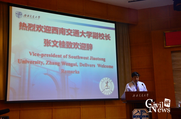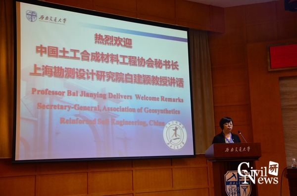 首先,西南交通大学副校长张文桂致辞欢迎远道而来的各位嘉宾,并预祝会议取得圆满成功。随后,中国土工合成材料工程协会秘书长、上海勘测设计研究院白建颖教授讲话。白教授指出,土工合成材料加筋土技术已经越来越多的应用到土木、水利、公路、铁路、港口、机场等各个领域,解决了大量的工程技术难题。本次会议为大家提供了一个互相交流的平台。