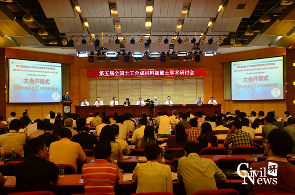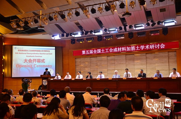 由中国土工合成材料工程协会加筋专业委员会、国际土工合成材料学会中国委员会主办,西南交通大学、中国中铁二院工程集团有限责任公司、中国中铁二局集团有限公司和泰安现代塑料有限公司联合承办的第五届全国土工合成材料加筋土学术研讨会于5月23日上午8:30在成都市西南交通大学九里校区国际报告厅隆重开幕。