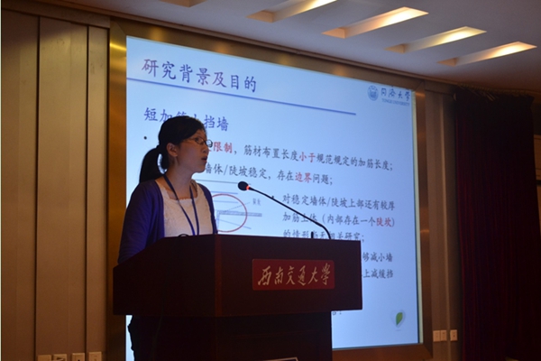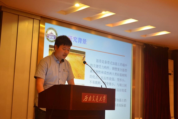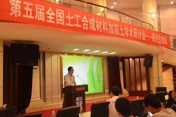5月23日晚20点30分,第五届全国土工合成材料加筋土学术研讨会研究生论坛于西南交通大学镜湖宾馆多功能厅准时举行。论坛的内容分别由八位博士和研究生依次主讲,并针对相关问题与现场同学进行讨论。报告主讲人依次为:同济大学博士生罗玉珊、北京交通大学博士生王贺、武汉大学硕士生邱子锋、西南交通大学博士生刘亭、同济大学博士生王兴涛、重庆大学硕士生郑斌、华中科技大学硕士生杨友彬和同济大学博士生沈盼盼。研究生论坛由王贺和宋世彤主持。