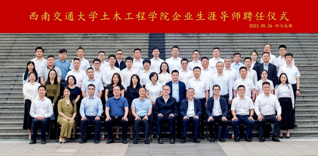 习近平总书记在党的二十大报告中指出:“要强化就业优先政策,健全就业促进机制,促进高质量充分就业。”为深入贯彻习近平总书记关于就业工作的重要指示,引导广大学生树立正确的择业观、职业观和就业观,5月26日上午9:30,土木工程学院在犀浦校区图书馆二号报告厅举行企业生涯导师聘任仪式。学校党委副书记余敏明,招生就业处处长陈岩峰,土木工程学院院长蒲黔辉、党委书记高平平、党委副书记周曦,中铁五局西南区域总部党委书记徐海燕及来自中国中铁、中国铁建、中国建筑、中国交建等企业的40余名企业生涯导师代表出席聘任仪式。聘任仪式由土木工程学院党委书记高平平主持,辅导员、学生代表参加了仪式。
