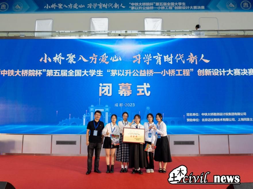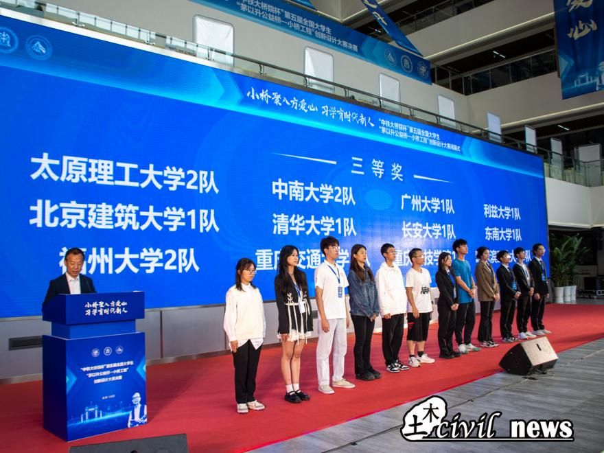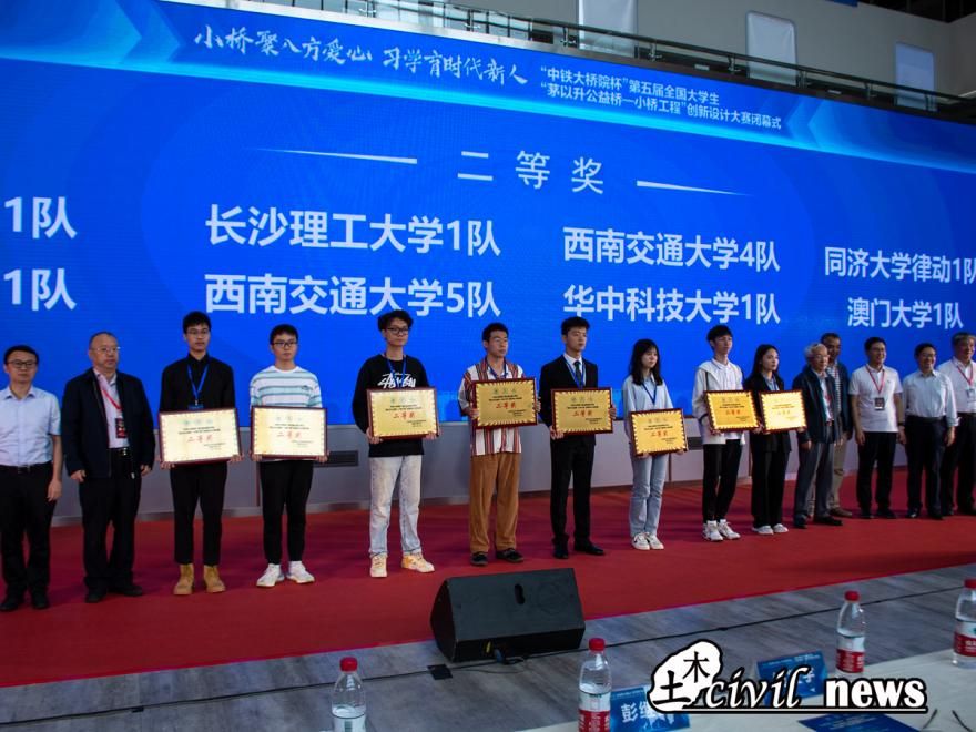 中午12点整,蒲黔辉院长再次感谢所有领导嘉宾、参赛师生、媒体朋友们以及中铁大桥勘测设计院集团有限公司对本次比赛的支持和付出,并宣布“中铁大桥院杯”第五届全国大学生“茅以升公益桥——小桥工程”创新设计大赛圆满闭幕。