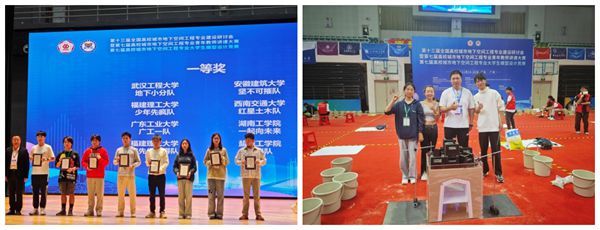 2023年7月~10月,全国开设城市地下空间工程专业院校经过学校初赛,共有80余支学生参赛队进入决赛。我校由土木工程学院地下工程系郭春教授作为指导教师,孔维浩、陈忆鹏、林飞宇、马鑫怡、赵蓉蓉、张金权等6名本科生组队参加了本次决赛。经过历时四个月的精心准备,从校内选拔到代表学校出征决赛,选手们克服了重重困难,在为期三天的决赛中,通过现场十余小时的模型制作、称重、加载等过程,最终获得全国一等奖一项、优秀奖一项。