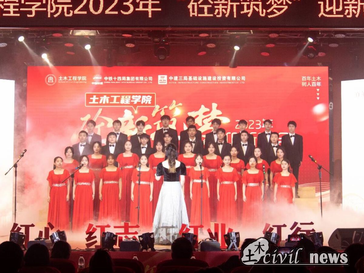 随后,晚会第二篇章正式开始,首先是由2022级造价1班、造价2班所带来的合唱《思念》,他们曾获第一届“引吭时代,高歌未来”校园合唱比赛冠军,并在四川省第十届大学生艺术展演活动中斩获班级合唱一等奖。