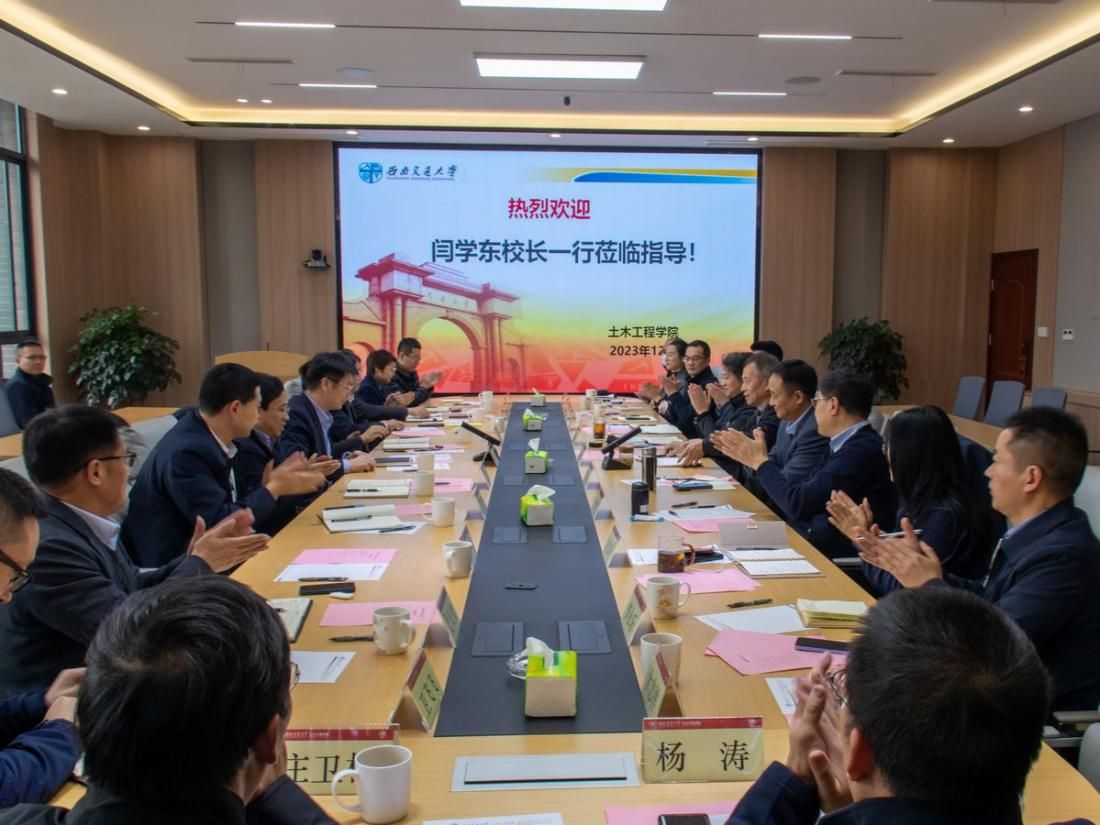 12月11日下午,校长闫学东一行莅临土木工程学院,就学院工作开展深入调研与交流,学院党政领导、学科带头人、系主任等代表参加会议。会议由土木工程学院院长蒲黔辉主持。
