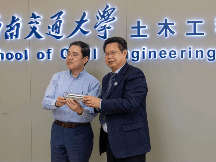 姚校长谈到,土木工程是我校的核心专业,为国家轨道交通领域输送了大量优秀人才。在双一流学科建设方面,学院紧密结合“交通强国”等国家重大战略强化学科实力,科技奖类证书位居各大高校、科研院所以及企业第一。在国际合作交流方面,学校与英国利兹大学等多个国际知名大学签订了联合培养计划。姚校长表示,期待我校同香港理工大学双博士学位项目落成,并在不久的将来开展深度合作。