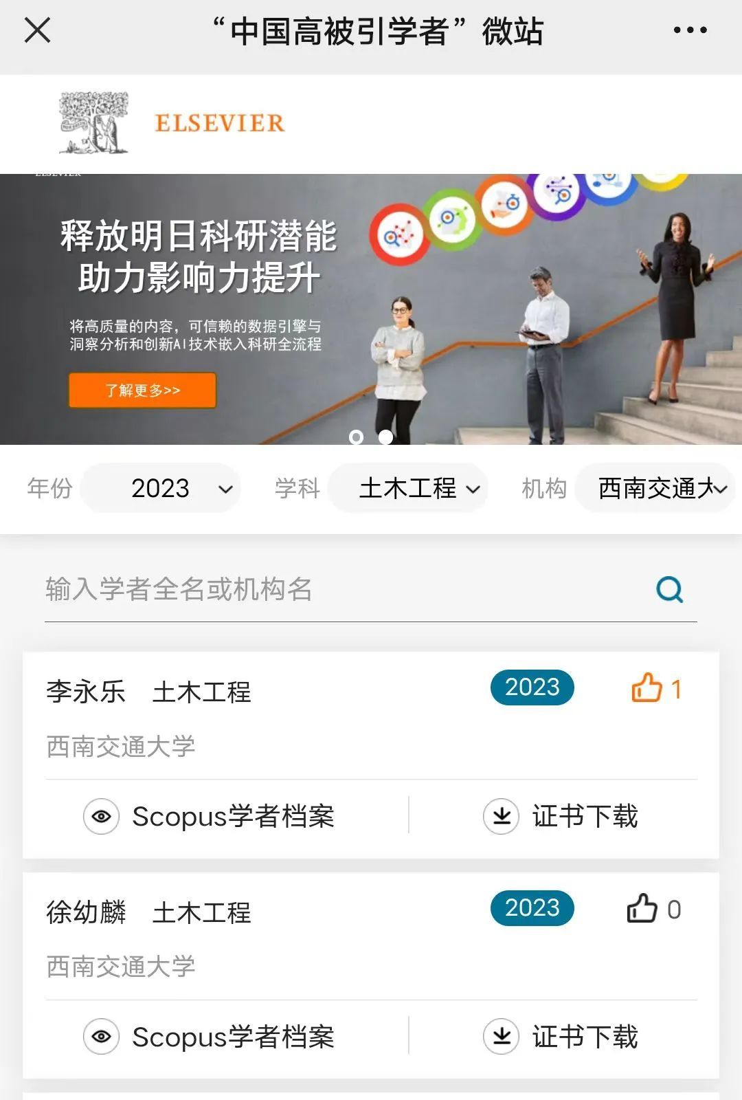 2024年3月27日,爱思唯尔(EIsevier)重磅发布2023“中国高被引学者”(HighlyCited Chinese Researchers) 榜单。全国496所高校、企业及科研机构的5801位学者入选。bat365中文官方网站共有2位教师上榜。