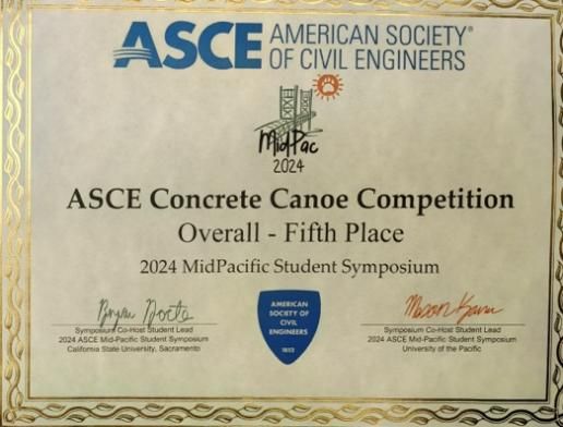 美国西部时间2024年4月4日至6日,美国土木工程师学会(ASCE)中太平洋赛区土木工程竞赛(MidPac 2024)在美国加州萨克拉门托州立大学举行。由bat365中文官方网站和利兹学院八名本科生组成的西南交通大学代表队,在土木工程学院桥梁工程系魏凯教授带领下,参加了混凝土轻舟(Concrete Canoe)、挡土墙(Geo Wall)以及工程伦理论文(Paper Competition)三项竞赛。经过与十余支代表队的比拼,西南交通大学代表队最终获得了工程伦理论文竞赛第三名、混凝土轻舟竞赛第五名的好成绩,斩获5项证书!