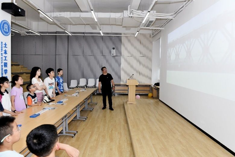 活动伊始,刘学信教授首先致辞。他表达了学校关工委对教职工子女的亲切问候和殷切期望。每一位少年儿童都是茁壮成长的青葱小苗,他们终将架设自己的桥梁连通未来。刘学信教授祝愿每一位桥小苗能在活动中激发出探索知识的乐趣,同时希望更多的人能够积极参与其中,让“桥小苗”学科知识成长营成为土木工程学院乃至学校的一道靓丽的风景线。