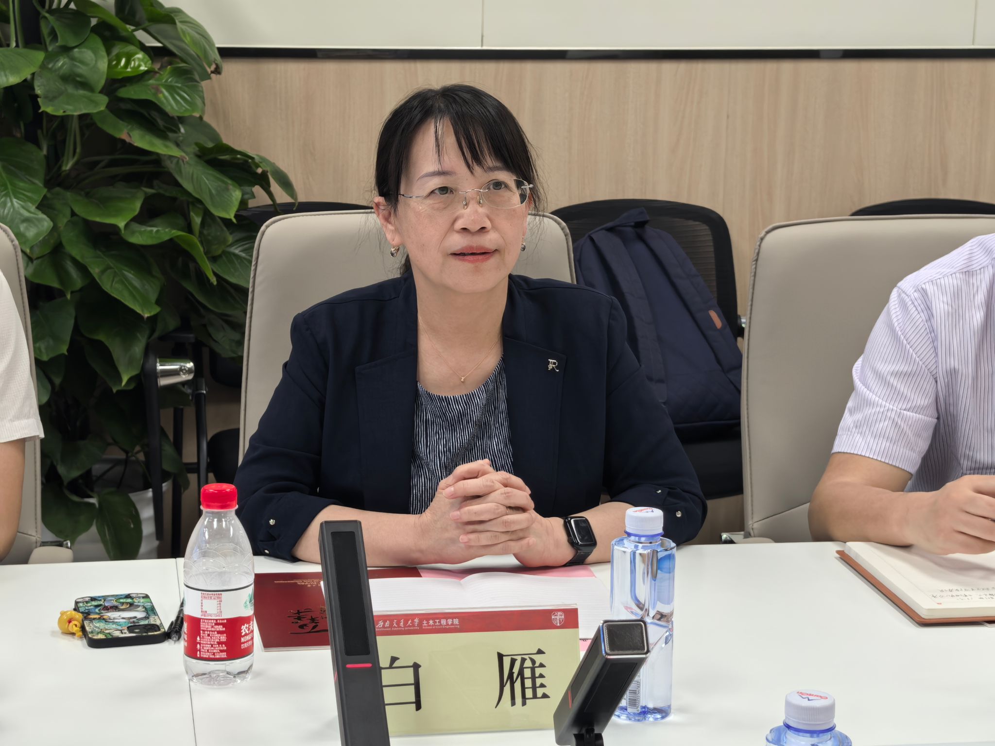 座谈会上,蒲黔辉院长对土木建筑工程学院白雁书记一行的到来表示热烈欢迎,并通过宣传短片介绍了土木工程学院的历史沿革、办学成果和未来规划。双方就专业建设、中外合作办学、课程思政建设以及实验室平台建设与管理、实验教学转型升级以及实验人员管理等方面进行深度交流。