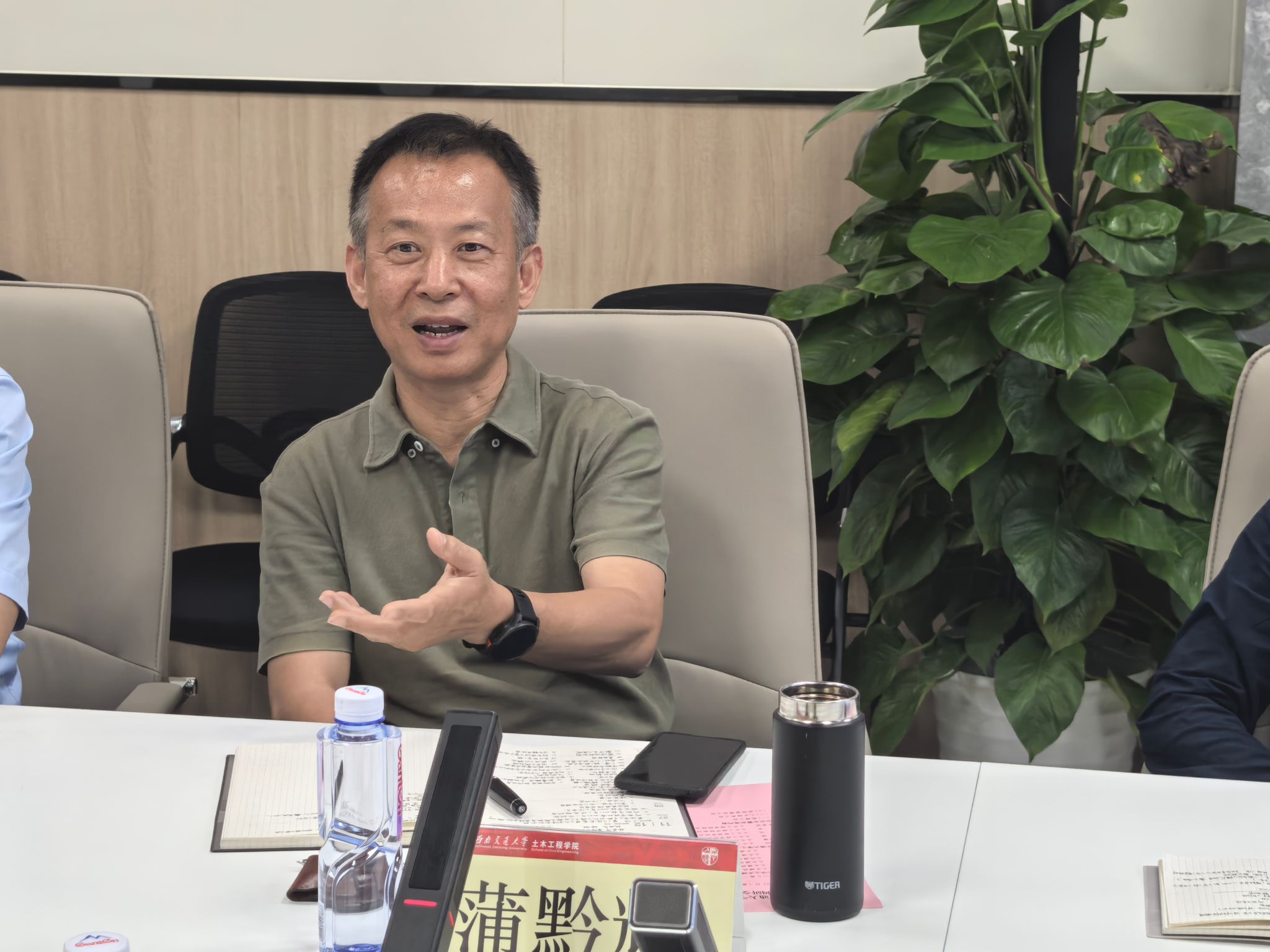 最后,调研团队到九里工业中心G座会议室与土木工程学院院长蒲黔辉、副院长富海鹰、副院长陈嵘等进行了座谈交流。