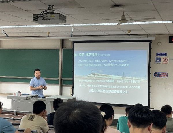 活动第一项邀请西南交通大学研究生“红路”理论学讲团,开展以“凝心感悟思想伟力,聚力奋进时代征程”为主题的理论学习活动。邀请了西南交通大学研究生“红路”理论学讲团成员童心豪和叶文龙分别做了题为“大国工程 民族重器”的主题汇报以及“领悟中国式现代化”的主题汇报。