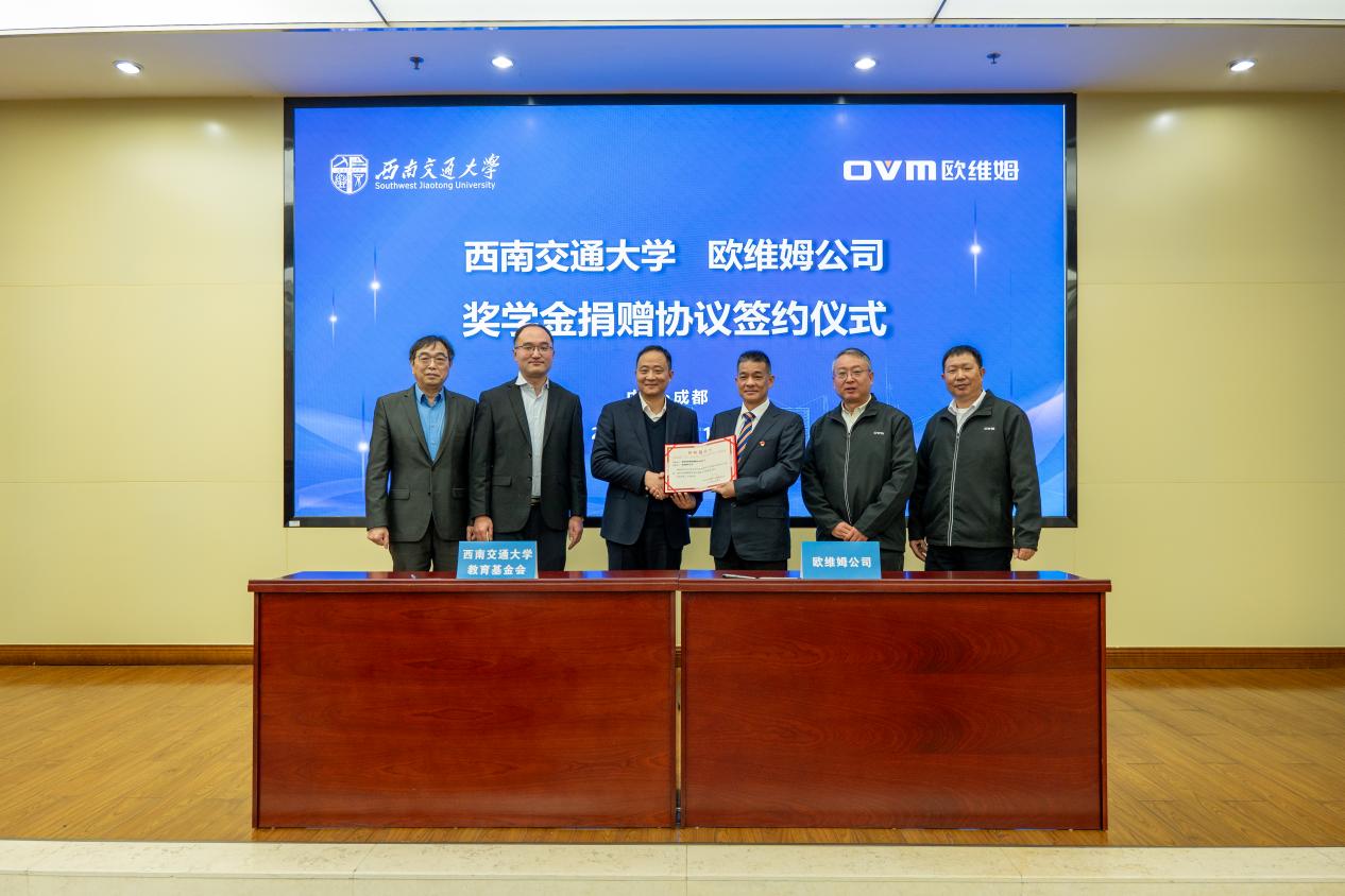 柳州欧维姆机械股份有限公司相关部门负责人,西南交通大学党委学生工作部、合作发展处、校友工作办公室(教育基金管理办公室)、基建规划与校园管理处、土木工程学院、科学技术发展研究院等单位相关负责同志参加签约仪式。