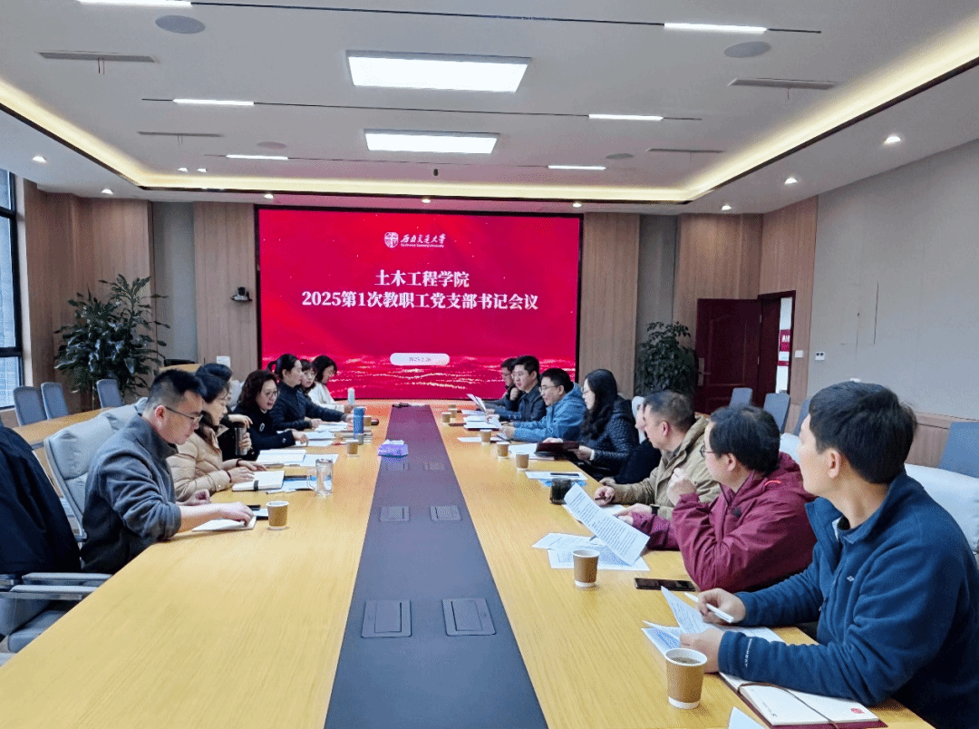 2月26日上午10点,土木工程学院2025年第一次教职工党支部书记会议在X4417A会议室召开。学院党委书记郑江、副书记车小洁、刘萍、院工会主席王艺霖、教师服务办公室主任甘泉、党委专职组织员熊麟、王楠和全体教职工党支部书记参加会议,会议由车小洁副书记主持。