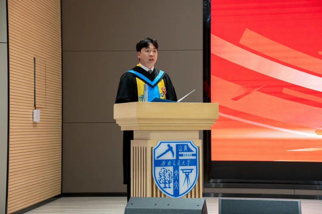 本科毕业生代表宋雨宸同学回顾四年求学路,在专业学习、竞赛实践与学生工作中完成从青涩到成熟的蜕变成长,并对母校、师长、家人和同窗表达了诚挚的感谢以及衷心的祝愿。