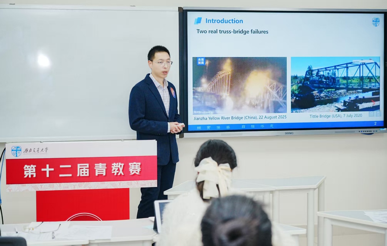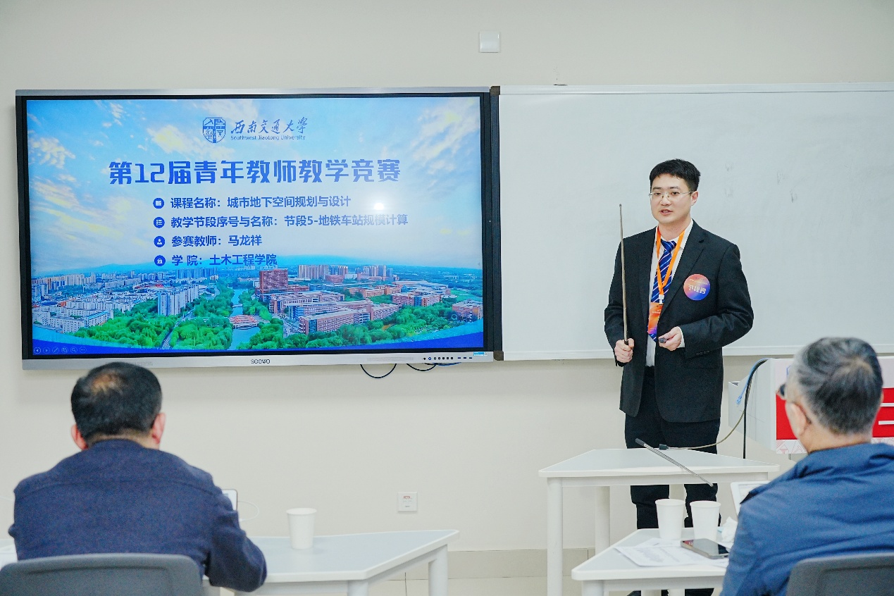 11月27日,西南交通大学第十二届青年教师教学竞赛决赛在犀浦校区三号教学楼举行。经过院级初赛与校级复赛的层层选拔,共有89名教师晋级决赛。bat365中文官方网站青年教师不负众望,凭借扎实的专业功底、精湛的教学技艺和饱满的育人热情,在学校决赛中表现亮眼,学院获奖教师人数与获奖等级均实现新的突破:道路与铁道工程系颜川奇老师、建筑工程系周强老师荣获一等奖;地下工程系姚超凡老师、张霄老师,桥梁工程系朱金老师荣获二等奖;地下工程系马龙祥老师荣获三等奖。学院党委书记郑江,工会主席王艺霖对赛场进行巡视,并进入课堂观摩教师授课。
