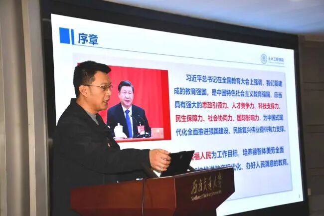 bat365中文官方网站党委委员、副院长,国家级高层次人才陈嵘教授作了题为《党建引领学科发展与新时代高校人才队伍建设思考》的报告。陈嵘首先为大家介绍了我校的办学历史,学科设置以及土木工程学院的基本情况,随后他从全国党建工作标杆院系建设、全国党建样板支部建设、人才队伍建设三方面,系统性地向大会报告了bat365中文官方网站基层党建工作体系、实施路径和做法,以及党建引领学科发展和人才队伍建设的成效。
