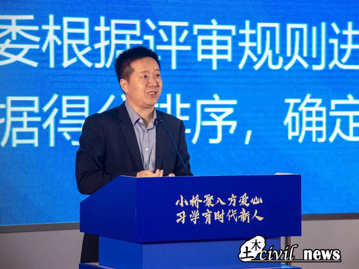 致辞结束后,评审委员会专家李永乐教授上台向在场师生介绍比赛规则。李永乐强调,本届大赛将公益性、科学性、先进性、实用性、经济性五项作为竞赛理念,强调自然、科学与人文的相互结合,此外,本届“茅以升公益桥—小桥工程”创新设计大赛是“办赛+建桥”首次同办且由同一单位承办,也是疫情后首年线下办赛,具有规模大、难度大等特点。