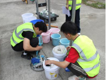 经过一上午的紧张比拼,7支队伍在比赛现场展示了各自的混凝土材料设计方案。选手们专心细致的对混凝土材料进行处理,并通过精确的测定扩展度、J环扩展度及T500,展示了自身设计方案的混凝土工作性。