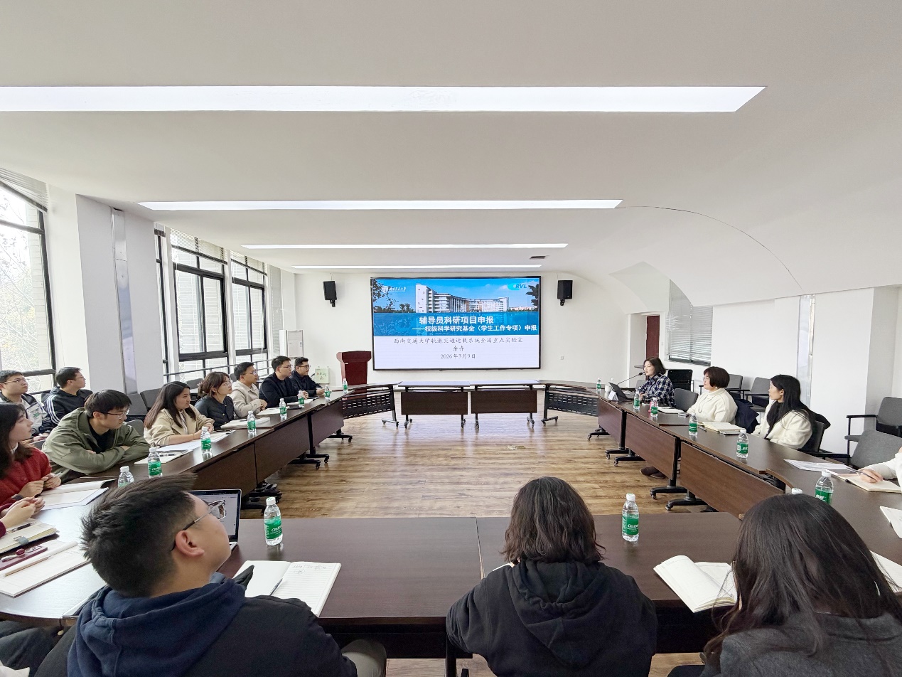 2026年3月9日下午,四川省精准“淬能”辅导员工作室学术沙龙在犀浦校区X4407工作室举行。本次沙龙邀请了轨道交通运载系统全国重点实验室余卉副教授主讲“辅导员科研项目申报——校级科学研究基金申报”,沙龙由工作室负责人商姚主持,来自学校各学院30余名辅导员参加了学术沙龙。